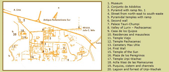 האתר שוכן במרחק של 40 ק"מ דרומית ללימה. רוב המבנים והמקדשים נבנו בין 800-1450 לספירה, רגע לפני כיבוש ע"י אימפריית האינקה. עד היום פירמידות רבות לא נחשפו ובאתר לא מעט פירמידות שהרסו או נפגעו על ידי תופעת אל ניניו (מזג אוויר הרסני). במקום ישנו בית קברות עתיק וכן איורים פרסקו של דגים (שיטת איור והדבקה עתיקה בדומה לפסיפס) מהשנים 200-600 לספירה. בשנים 600-800 לספירה החלה הבניה של העיר על ידי תרבות הווארי. אחרי נפילת הווארי המקום המשיך לגדול ושימש כמרכז דת.